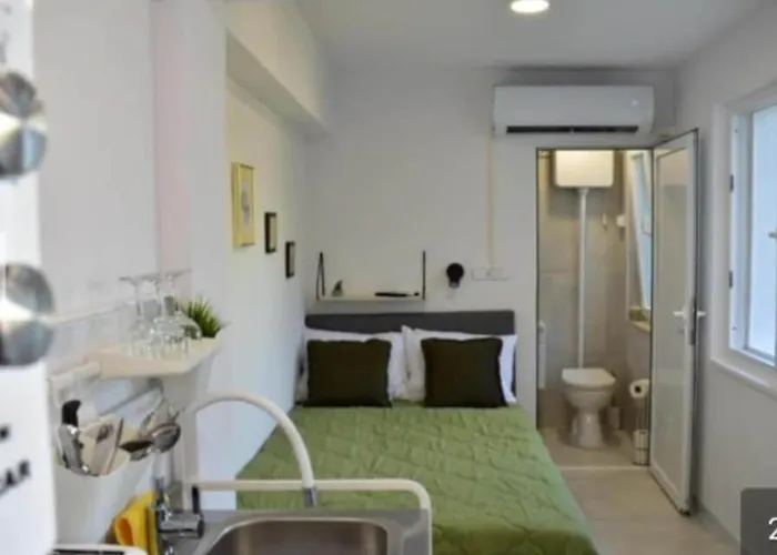 Bolsos by Kristina se encuentra a poco más de 15 minutos en coche del apartamento de 17 m² y la Catedral de San Marcos está a 20 minutos en coche. El apartamento está situado a 5 minutos a pie del centro de Lumbarda.